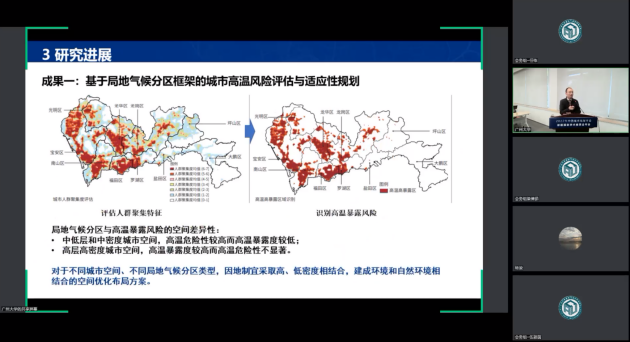 关于城市高温热浪风险测评与适应性规划。针对高温热浪事件的致灾风险,以岭南地区(高温高湿气候典型地区)为研究对象,开展气候适应性空间规划研究,以降低热浪强度和风险发生。根据城市高温风险及其空间差异性、局地气候分区、高温风险空间特征、城市规划指标与高温风险关联提出了气候适应性空间规划策略。报告介绍了在基于局地气候分区框架的城市高温风险评估与适应性规划、基于岭南地区气候特点的适应性规划设计措施等方面的研究成果,运用软件模拟空气温度、相对湿度、风速、太阳辐射等环境热舒适度数据,在一些城市更新案例中,模拟结果可准确评估更新改造前后的状况。