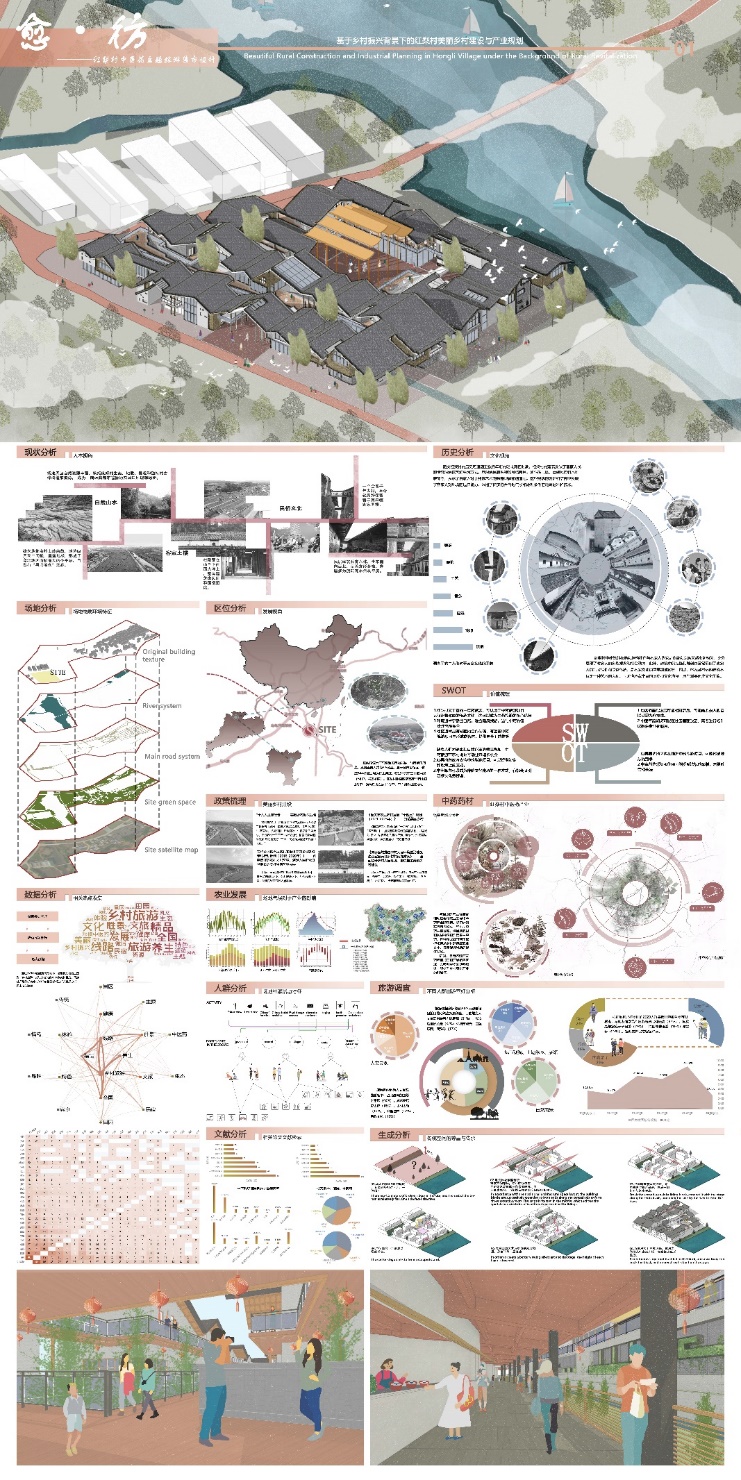 说明:愈彷是一个融合乡村药材集市和客家文化的独特场所,场地位于广东省韶关市始兴县红梨村的东南处,旨在为当地居民提供一个具有吸引力和实用性场所的同时,吸引不同地区的游客观光和体验,带动红梨村产业的发展。在建筑设计上,我们融入了大自然和客家文化的元素,同时也采用了传统红砖材料,使建筑与红梨村的乡土氛围相呼应。我们也十分重视与当地草药产业的结合。我们为集市内规划了专门的土地,供农民种植各类草药,并提供专业的技术指导和管理支持。我们还设立了草药加工区域,以便农民将草药进行加工和提炼,增加附加值并推动当地经济发展。进行加工和提炼,增加附加值并推动当地经济发展。